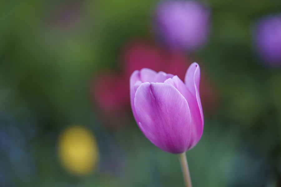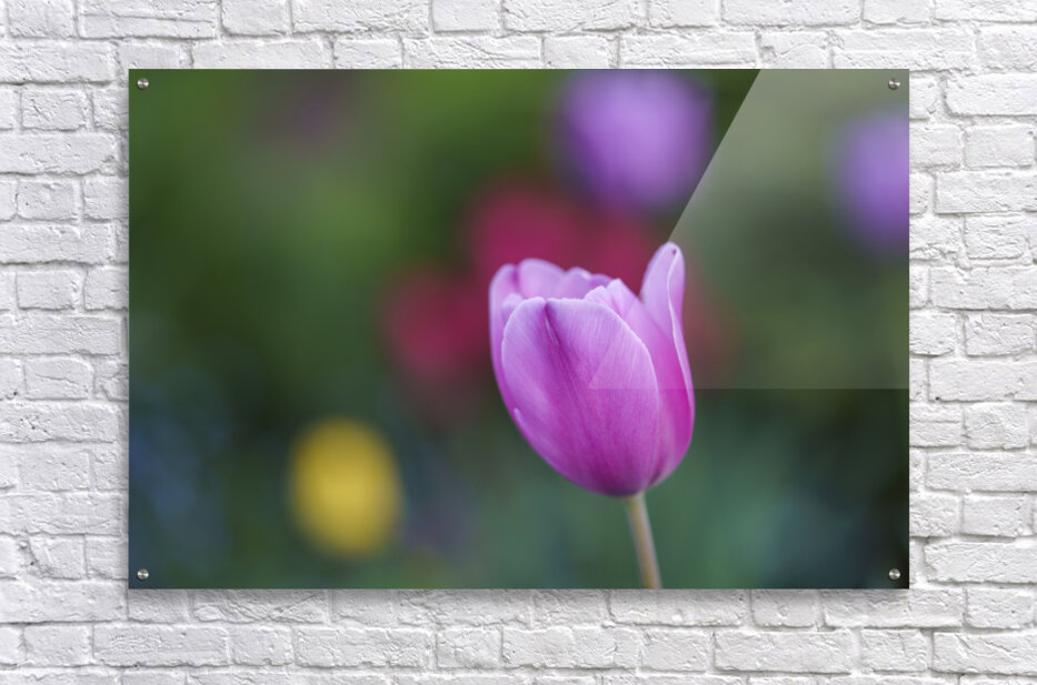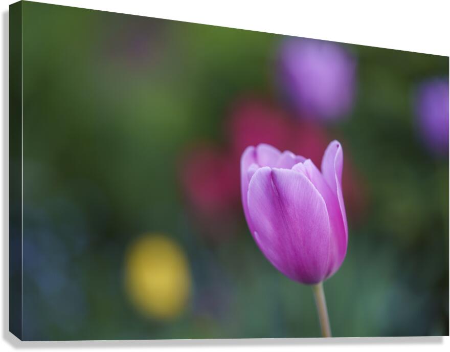 Pretty pink Tulip on a colourful and blurry Tulip field background. Photo taken at the Canadian Tulip Festival in Ottawa.
