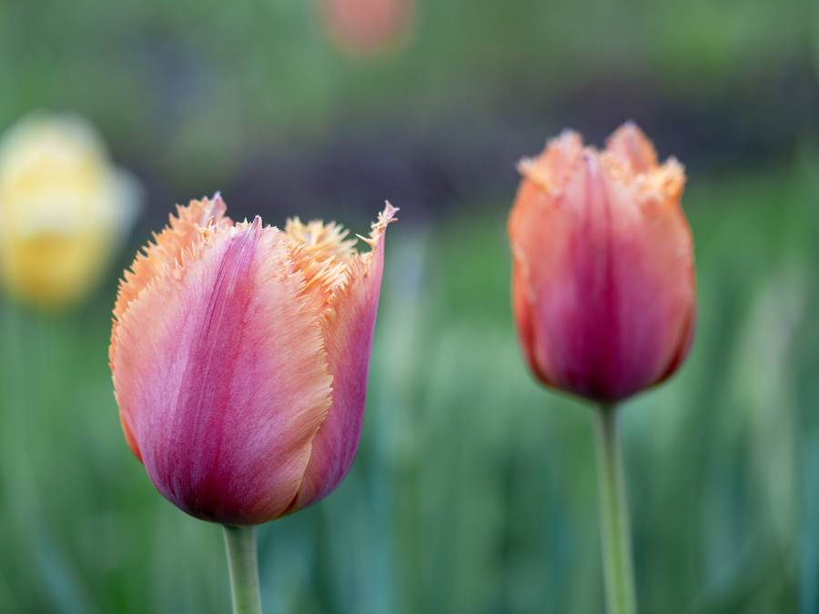 Lambada Tulip with blurry green grass background. Photo taken at the Canadian Tulip Festival in Ottawa.