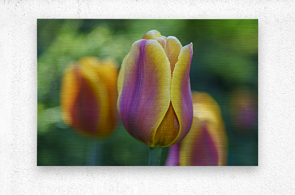 Pastel colored Tulip against a colorful blurry tulip field background. Photo taken at the Canadian Tulip Festival in Ottawa.