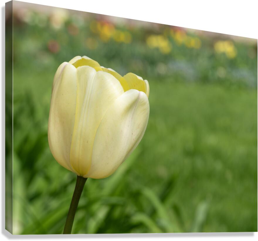 Yellow Tulip with blurry flowers in the background. Photo taken at the Canadian Tulip Festival in Ottawa.