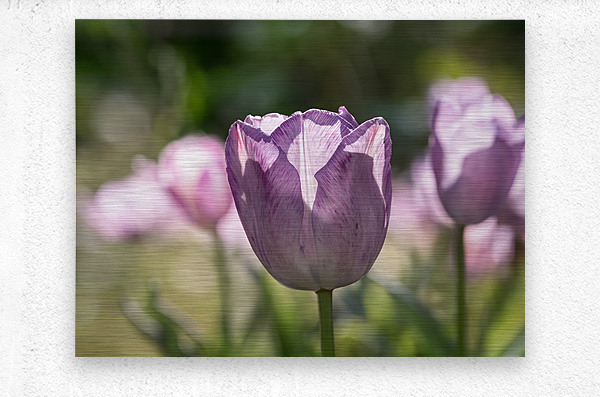 Focus on a purple see through Tulip with blurry tulips in the background field. Photo taken at the Canadian Tulip Festival in Ottawa.