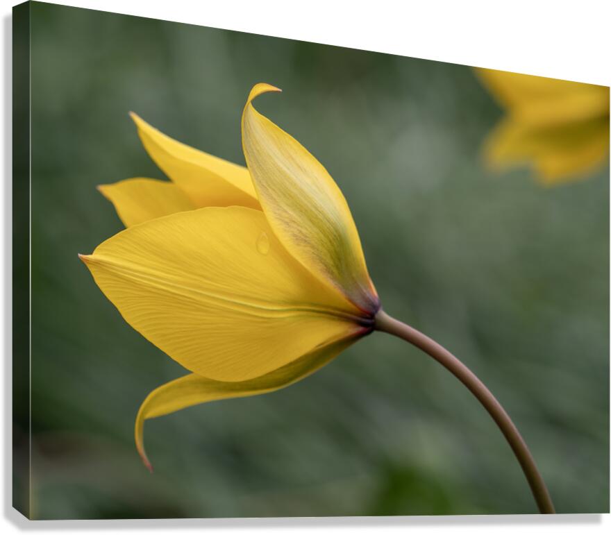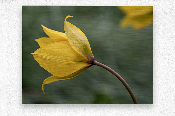 Bent yellow Tulip in a blurry green grass background. Photo taken at the Canadian Tulip Festival in Ottawa.