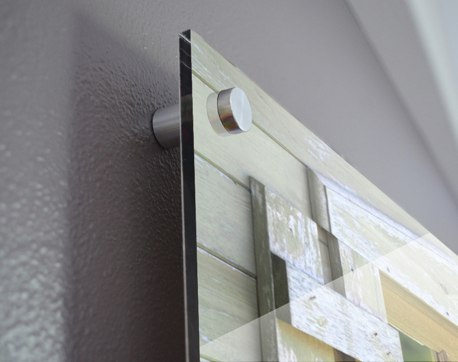 Impression sur acrylique avec entretoises ( cylindres métalliques )